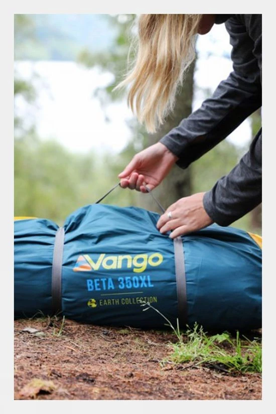 The Beta 350XL 3-man tent is a 3-pole tunnel tent that offers generous sleeping space, combined with a large, functional porch area for storing your camping essentials. The Beta features our robust Sentinel Eco Flysheet (3,000mm HH), made from single-use plastics, including updated darker bedrooms for a better night’s sleep and comes in a FastPack Carry Bag, making life easier after a great camping trip. The Beta is ideal for slightly longer trips and will also appeal to campers seeking a more spacious and comfortable weekend tent.