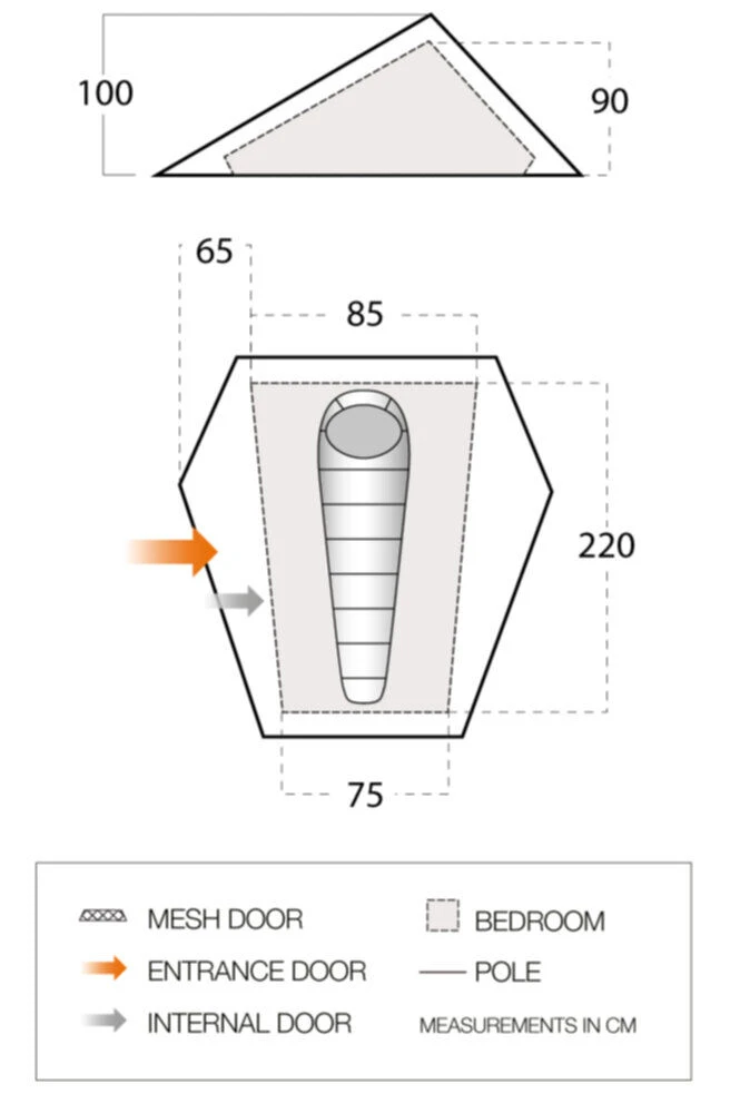 The Vango Heddon 100 is designed to be pitched with 2 walking poles, it is lightweight and compact, perfect for backpacking adventures, featuring an eco-friendlier flysheet made from recycled single-use plastics.